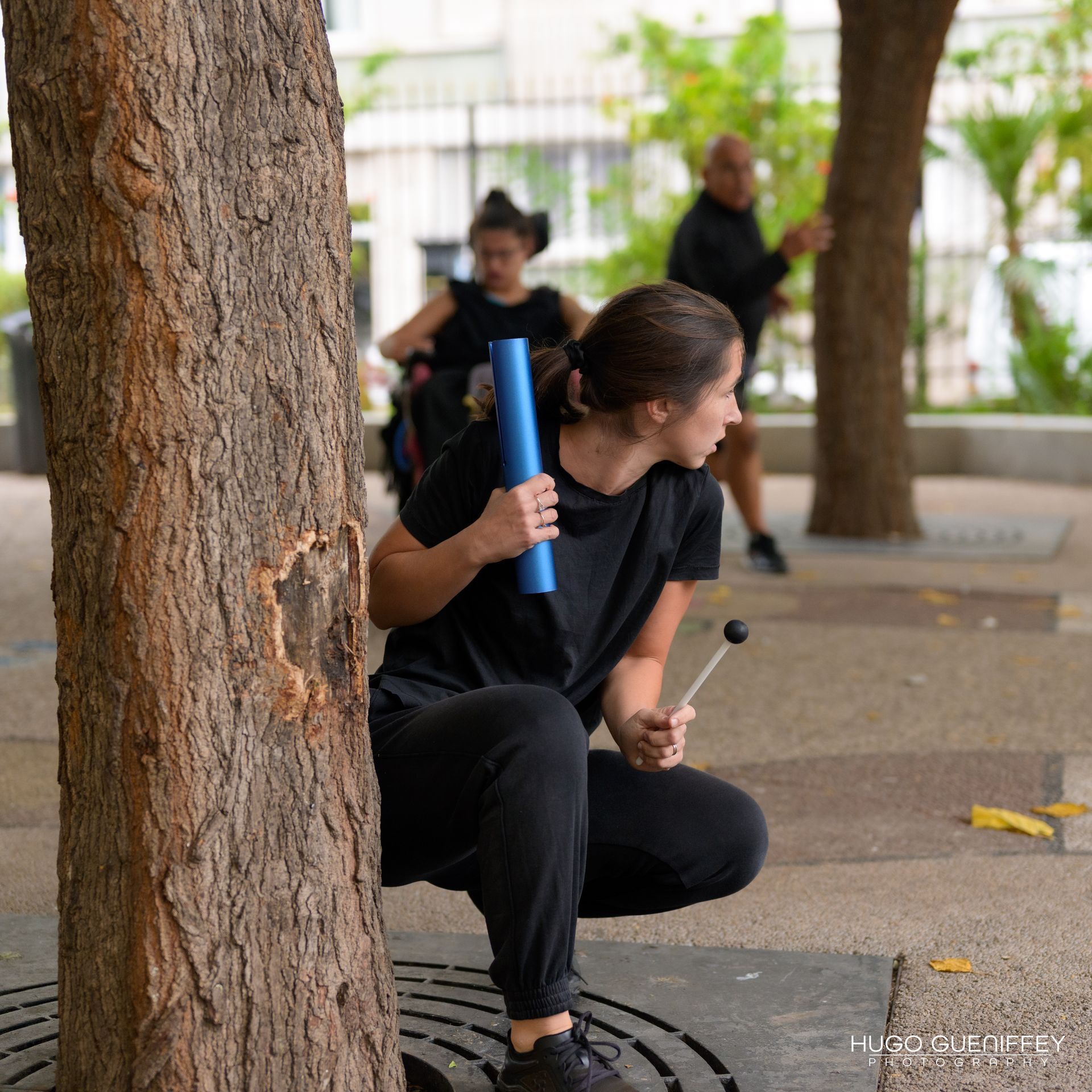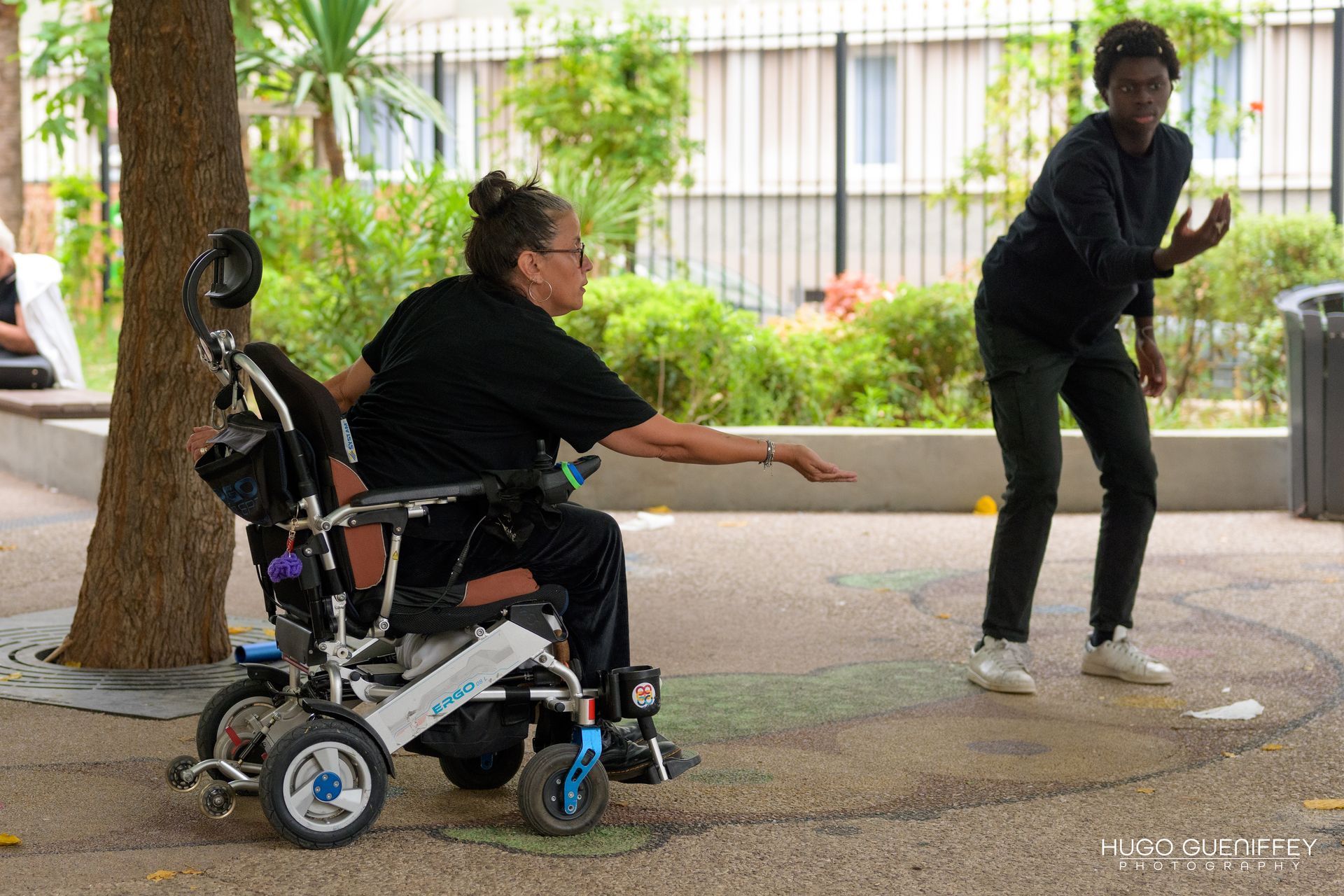 En août, la Trésorerie a confié à ACA Cie l’organisation d’ateliers en plein air, dans le quartier de Trachel. Avec Marina Matic, danseuse et pédagogue, et Grégory Oriol, musicien percussionniste et professeur au Conservatoire de Vence, danse et musique se sont mêlées aux récits et aux sons du quartier.